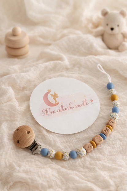 Personnalisable avec le prénom de votre enfant, c'est un accessoire unique et utile au quotidien. Un indispensable pour garder la sucette toujours à portée de main !