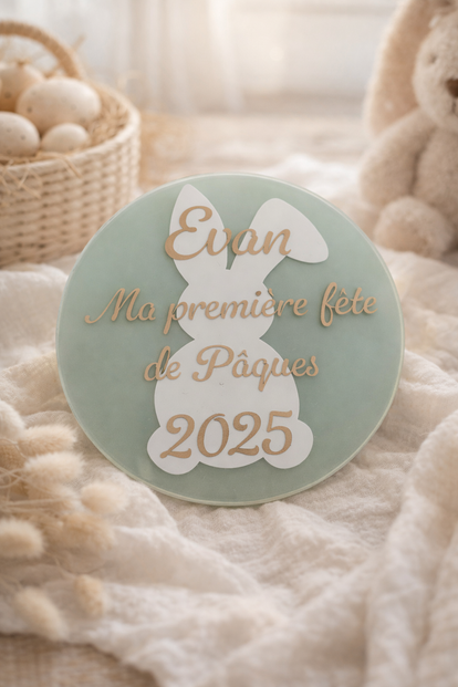 Un moment unique à immortaliser ! Cette carte étape marque la toute première célébration de Pâques de votre bébé. Entre les premières chasses aux œufs, les éclats de rire et la magie de cette fête printanière, conservez un souvenir précieux de cette belle journée.