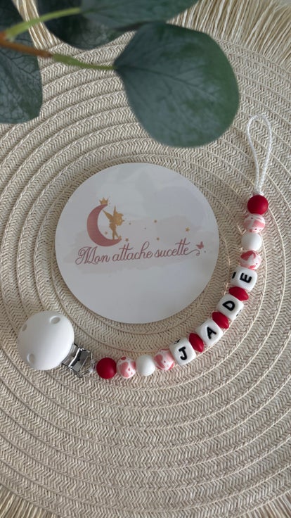 Personnalisable avec le prénom de votre enfant, c'est un accessoire unique et utile au quotidien. Un indispensable pour garder la sucette toujours à portée de main !