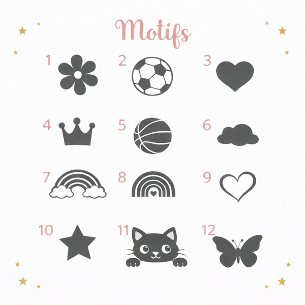 Plusieurs couleurs disponible, écriture et motif au choix.