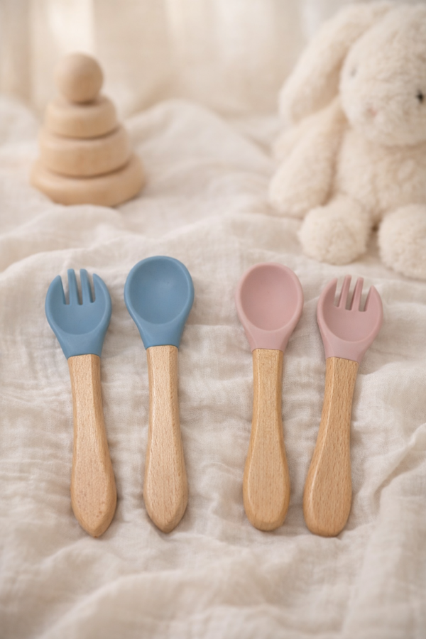 Ensemble Fourchette & Cuillère en Silicone – Personnalisé avec le prénom de bébé