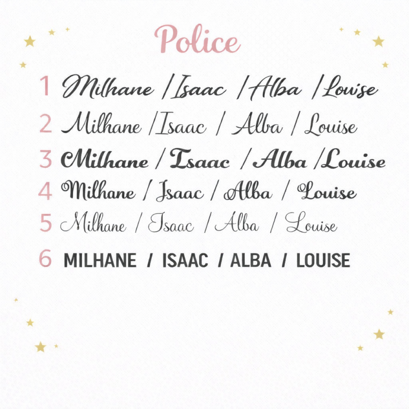 Les modèles peuvent varier en fonction du prénom (pas de perles intercalaires entre les lettres, disposition des perles différentes...)