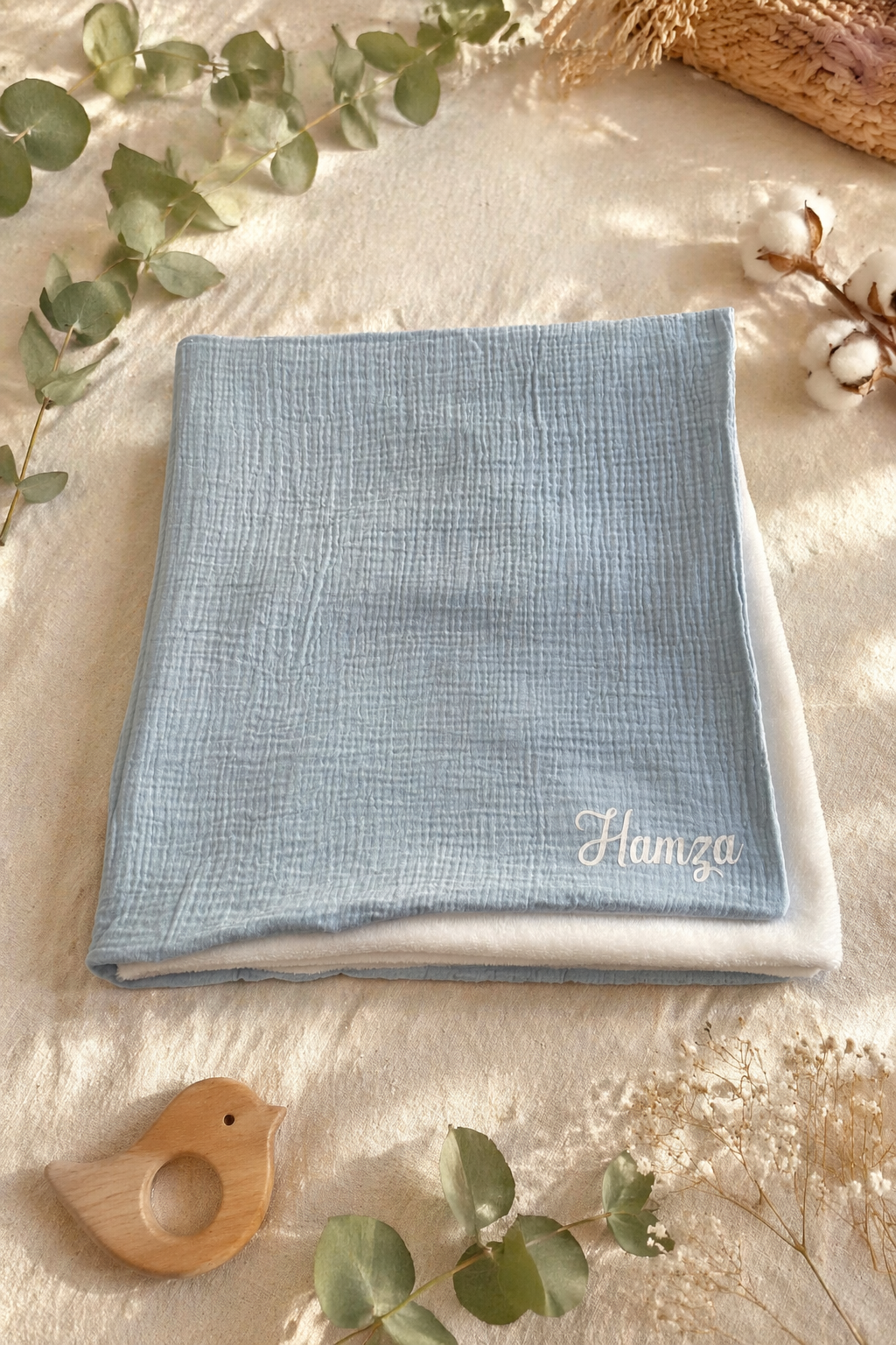 ✨ Couverture bébé personnalisée en gaze de coton – 90x90 cm ✨